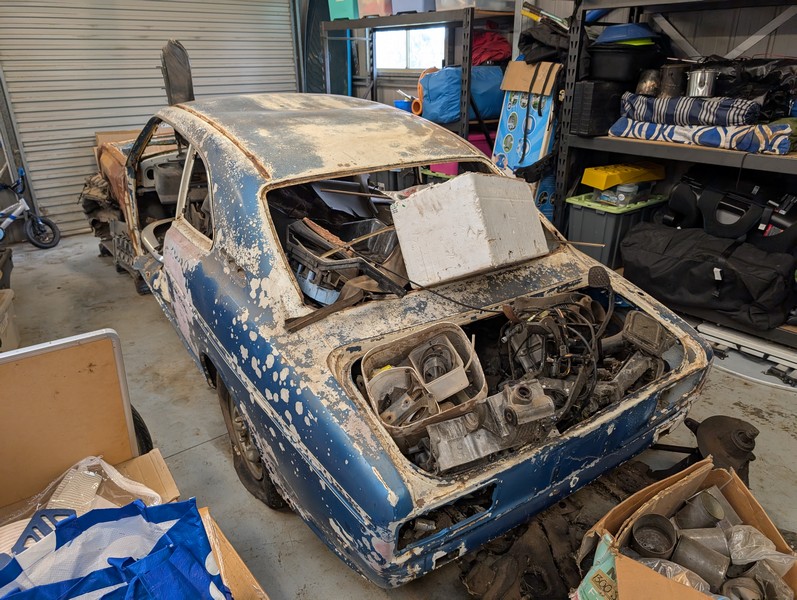 The Coupe 7 has been mostly stripped of parts as this was the body I’d planned to restore. There is a fair amount of rust around the handbrake area and the boot floor. I believe it is salvageable though. I believe the engine for this car will require a rebuild as apparently it was blowing a lot of smoke when it was delivered to the farm. The interior of this car is in surprising condition given with few cracks in the dash and other than one seat that is missing the shroud that covers the rear of the seat, the seats aren’t too bad either.